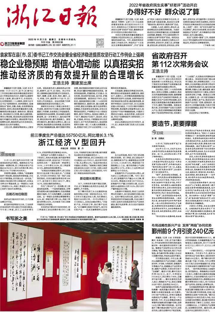 浙江經(jīng)濟(jì)V型回升 轉(zhuǎn)自2022年11月2日浙江日?qǐng)?bào)頭版